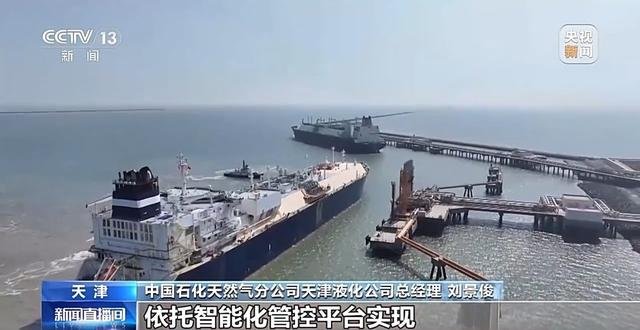 中石化天然气分公司天津液化公司总经理刘静军:热力通过智能管控平台,可以实现从船舶装卸到管网外送的全链条精细化管理。日均对外输气量约1000万立方米,高峰期对外输送能力可达5800万立方米。