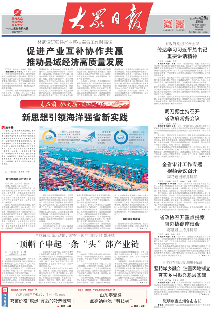 《人民日报》和《戴Zhong日报》今天(8月28日)也向捷岛的利贝祖镇报告 - “中国仇恨镇”。青岛何祖城的Libezhuang Town的年产量约为5亿个中和高端运动帽和休闲帽,输出量接近35亿元。这些产品已出口到100多个国家和地区,包括欧洲,美国,日本和韩国。世界上三个运动帽之一是在这里制作的。作为“中国帽子镇”,李·盖兹(Li Gezhuang)镇使用帽子将“头”工业连锁店汇总在一起。在此示例中,《人们每日》出版了由Dazhong Daily在第10版的传真版中的记者撰写的手稿,Dazhong在首页上发布了它,显示了更改的做法,并升级了传统的制造业。请参阅详细的报告 - 世界上每三个运动帽每三个运动帽,一个由jiaozhou的Libezhuang镇制成。戴上“头”链的帽子。对于世界上每三个运动帽,都会由它制成。青岛何祖城的Libezhuang Town的年产量约为5亿个中和高端运动帽和休闲帽,输出量接近35亿元。这些产品已出口到100多个国家和地区,包括欧洲,美国,日本和韩国。作为“中国生产小镇”,李格尚镇使用帽子汇总了一个“头”工业连锁店,该链显示了改变和升级传统制造业的技巧。在8月25日上午7点,在Qingdao Haiding Paichang Hat Co.,Ltd,机器人的手臂准确地砍下了激光定位下的防水布,并且电子屏幕实时跃升了欧洲和其他区域的30,000个运动帽子数据。公司负责人王·朱乌(Wang Junyu)说,这批赛车广告运动帽产品需要5天的交付以及数字生产SCHEduling System自动协调了7家支持公司的协调制造。 Haising Paichang Hat每年出口超过1100万帽子。通过“ 5G+工业互联网”平台,传统的帽子制造过程被压缩了8小时,收益率提高到99.6%。 1980年代,帽子行业在Legezhuang Nagimula镇制作帽子。 1985年,来自山东的香港商人Xu Zibin与当地企业合作,建立了制作帽子的企业。他已经是该行业的领导者已经三年了,并领导了家庭研讨会上的配件生产。外国供应商互相互相交往,当地辅助材料继续增长,帽子行业的上升工业连锁店,例如喂养,刺绣,螺纹制作,盖子和帽子帽子逐渐形成。 2008年,李格尚镇(Li Gezhuang Town兰斯(Lans)介绍了支持步骤,并在2009年授予了“中国帽子制造商”的头衔。“制作帽子需要18个流程和近10个辅助材料。jiaozhou Hatmaking Industry行业商会的总裁Lu Yuzhen表示,完美的设施来支持工业范围的工业范围,使工业范围内的工业范围很高,使其具有高度成本的高品质,并在较高的成本上获得了高质量的质量。 Lagezhuang Town从低端处理到高端定制,分散的研讨会,与整个连锁店的合作,有400多个帽子制作和200多个帽子,包括82个帽子,包括使企业超过规模的企业,在每个村庄中都涉及“互联网”。 BATC的定制H正在出现,因此面临需求的变化,使Lagezhuang镇的企业的帽子也迅速改变。自2018年以来,Qingdao Qianfeng International Hat Art Co,Ltd已开始开发智能生产线。目前,刺绣和衬里等基本过程中有60%是自动的。该公司总经理王·艾米(Wang Aimei)表示,自动化,数字化和工业互联网的深刻整合将促进企业的跨越发展。在变革的数字过程中,研发投资还限于一些中小型帽子制造公司的发展。为了解决小规模的问题,在中小型的尼泊克中,李格尚镇(Li Gezhuang Town)领导了一个2,000平方英尺的明智共享工厂,配备了130多个智能设备,可以替换18个帽子制作过程中的10个手册。因为它是我Nauguration到2023年6月底,它与镇上近260家制造公司合作。 Lu Yuzhen提出,公司可以通过应用程序下订单,通过应用程序下达魔术扣,织带和其他配件,共享工厂订单并实现平台支付,这改善了该镇帽子行业中产品的整体质量。 “例如,由机器制造的产品的帽子边缘和帽子表带具有相同的宽度和拱形,质量比sewing更好。”经过数字化和智能的转型,传统研讨会中的“指手指技能”跳入了智能工厂的“云经济”,促进了制造帽子的一般成本,使帽子在利格尚镇(Ligezhuang Town)造成企业,以降低近30%,并提高生产效率近4倍。看似简单的帽子正在隐藏许多未知的“技术工作”。筛选技术很昂贵,有很多工作要做。使公司在不同地方的测试和STANdards进行了六件运动帽子的过程,这通常是有争议的。 “青岛Good Brothers Hat Maker Co,Ltd。的总经理Gao Yuxi回忆说,2013年,许多本地公司提出了一个勇敢的想法 - 为体育运动中的六个帽子制定行业标准。很快,六件式运动帽子与六帽结合了六个帽子,这些帽子与Lagezhuang镇上的企业成为了Lagezhuang镇的企业。跑步者“到“规则制造商”。经过多年的探索,城镇中的城镇帽子的生产建立了一个完整的标准系统,从提取材料的提取,质量检查过程中的制造过程。在商业商业行业的当地制造商业生产中,企业共享技术经验并共享技术困难,形成了“质量改进的质量改善”,“质量改进的行业”循环l升级。